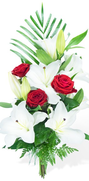 Un bouquet dans la simplicité mais remplit de bonnes intensions. Le blanc, signe de pureté, équilibre parfait des couleurs et le rouge, pour l'amour et la passion. Deux couleurs qui une fois associées aux fleurs telles que l'élégant lys et la somptueuse rose ont donné naissance à ce bouquet de fleurs, le Mystère de Roses. Un bouquet linéaire dès plus populaire avec ses branches de lys blancs, ses trois roses rouges dans sa formule Meilleur Compromis, quelques feuilles de Kentia, le tout uni par un lien harmonieux. Afin de mieux vous servir, la livraison des fleurs comme la création de votre composition sera faite par un artisan fleuriste au plus proche de la personne à livrer.
